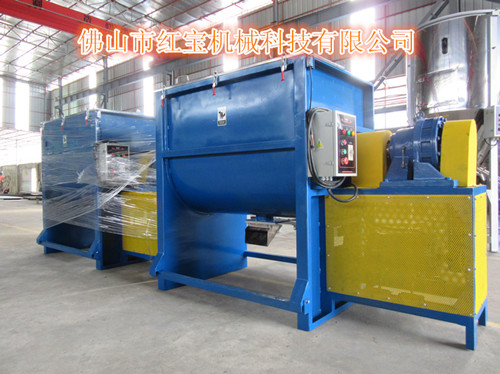 臥式筒體內裝有雙軸旋轉反向的漿葉,漿葉成一定角度將物料沿軸向、徑向循環翻攪,使物料迅速混合均勻臥式混合機性能特點減速機帶動軸的旋轉速度與槳葉的結構會使物料重力減弱,隨著重力的缺乏,各物料存在顆粒大小、比重懸殊的差異在混合過程中被忽略。激烈的攪拌運動縮短了一次混合的時間,更快速、更高效。即使物料有比重、粒徑的差異,在交錯布置的攪拌葉片快速劇烈的翻騰拋灑下,也能達到很好的混合效果。混合均勻度高,殘留量少,適合兩種以上肥料,添加劑預混料的混合。
