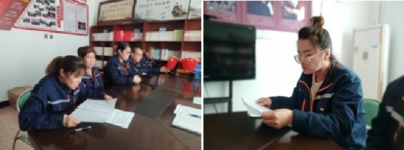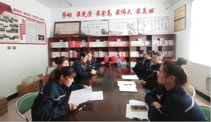 后勤黨支部書記王中立帶大家學(xué)習(xí)文件精神