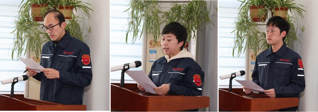 安全、環(huán)保工作目標(biāo)責(zé)任狀簽訂后,儲(chǔ)運(yùn)事業(yè)部、北方貨運(yùn)公司、洗選事業(yè)部、浩然實(shí)業(yè)公司、集團(tuán)辦公室、星凡匯文化藝術(shù)發(fā)展公司的安全環(huán)保檢查員代表本單位進(jìn)行了大會(huì)表態(tài)發(fā)言,紛紛表示以海明人精神為總要求,堅(jiān)決完成集團(tuán)公司下達(dá)的今年安全環(huán)保工作責(zé)任目標(biāo);全體與會(huì)人員面向國(guó)旗和公司旗,在集團(tuán)公司副總裁王林成的領(lǐng)誓下,向偉大的祖國(guó)、向集團(tuán)公司進(jìn)行了莊嚴(yán)的安全宣誓,用錚錚誓言彰顯安全衛(wèi)士的責(zé)任擔(dān)當(dāng)。