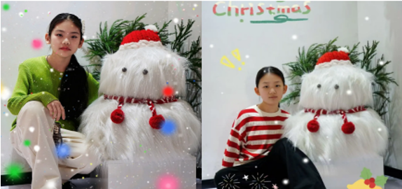 圣誕主題打卡環(huán)節(jié)正式開啟,多樣的拍攝場景讓孩子們的快樂值拉滿,每一個畫面都定格了獨屬于童年的圣誕美好: