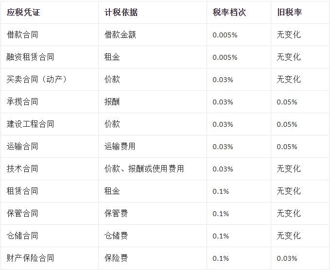03其他印花稅稅率變化比較