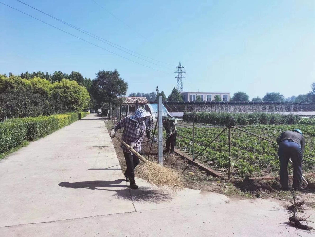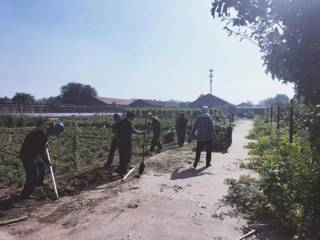 車(chē)間工人鏟除生態(tài)園雜草