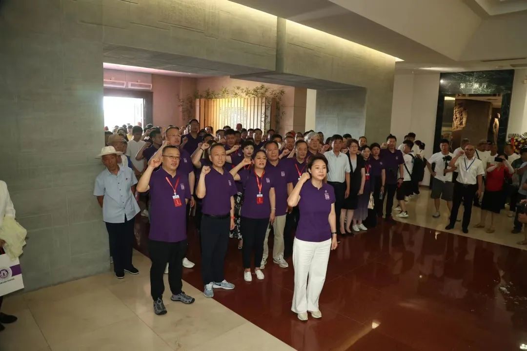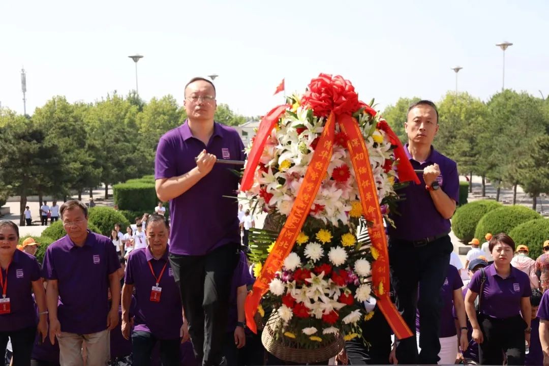 在黨的102歲生日到來這天,全體校友,心懷崇敬,首先來到唐山市樂亭縣,瞻仰了我黨重要創始人之一李大釗同志紀念館,校友們現場體驗了李大釗同志“鐵肩擔道義、妙手著文章”的崇高情操和精神追求。上午9時,與會校友緩步通過矗立著八根功績柱的中央紀念廣場,走過寓意李大釗38載生平的38級臺階,向李大釗同志敬獻花籃,并在黨旗和李大釗雕像前重溫入黨誓詞。