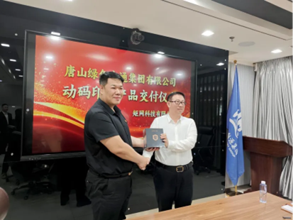 參觀過后,甘戈總經理首先代表矩網科技對唐山綠色交通集團和唐山政達供應鏈管理有限公司的來訪表示熱烈歡迎,并與劉鵬總經理舉行了動碼印章產品的交付儀式。他表示,矩網科技一直致力于打造中國首個全場景安全印章智慧解決方案,此次交付動碼印章更是希望與唐山綠色交通集團共同探索更多合作機會,共同推動交通物流行業的綠色轉型和高質量發展。
