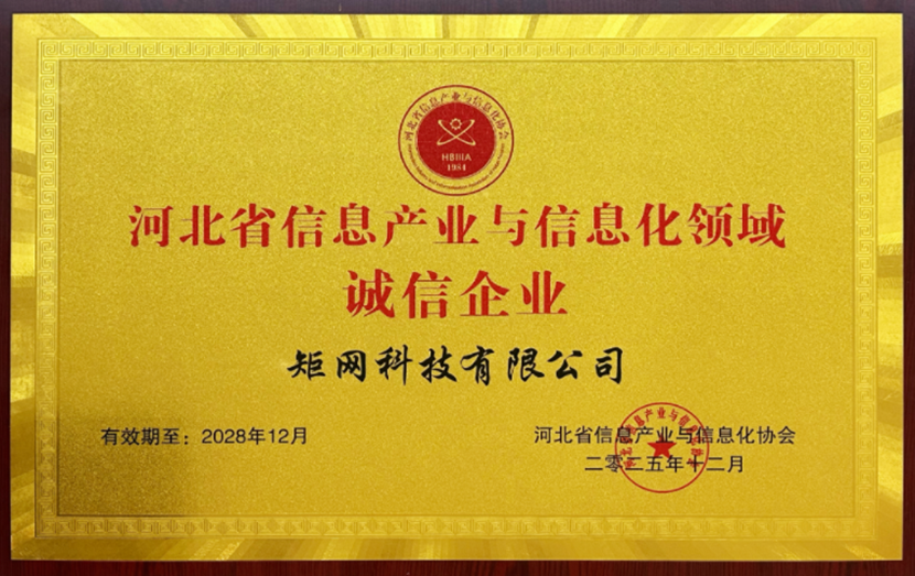 矩網科技榮獲河北省信息產業與信息化領域誠信企業,與公司一直踐行的“以誠信求生存,以互利求共榮”的理念密不可分,今后矩網科技將堅持推進企業誠信體系建設,以誠信為基石,以創新為動力,不斷提升核心競爭力與可持續發展能力,深化誠信與科技融合,為河北省信息產業與信息化高質量發展做出更大的貢獻。